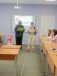 Сегодня, 17 декабря, студентка 2 курса специальности «Сестринское дело» группы 522 Кобзева Алина под руководством преподавателя истории Клюшиной Е. В. приняла участие в форуме «Колледж — территория патриотизма».