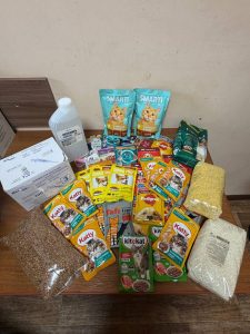 Благодаря им было собрано несколько килограммов крупы, несколько килограммов сухого и мокрого корма, большое количество игрушек и хозтоваров, медикаменты.
