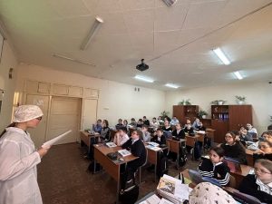 17 февраля преподаватель Веремеенко Дарья Сергеевна со студентами 520 группы Нурмановой Олесей и Лазовской Яной провели беседу со школьниками МОУ «СОШ № 5 им. В. Хомяковой»