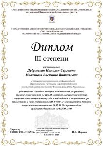 Методическая разработка преподавателей Дубровской Н.С. и Мавляновой В.В. получила диплом III степени, преподавателей Коноваловой Т.Ю. и Алыевой М.В. — сертификат участника.