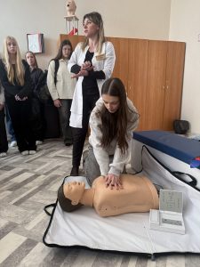 Под руководством опытного преподавателя Елагиной О.В. школьники учились алгоритму оказания первой помощи человеку, потерявшему сознание. Ребята на практике пробовали оценить состояние «пострадавшего», проверить дыхание, отработать технику оказания сердечно легочной реанимации.