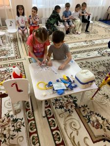 23 января Жигачевой М.С. в рамках ранней профориентационной деятельности было проведено мероприятие на базе МАДОУ «Детский сад № 27» с детьми дошкольного возраста «Добрый доктор Айболит». Знакомство с медицинскими профессиями сопровождалось разнообразными играми, включающие собирание пазл, прохождения лабиринтов, эстафеты, нахождение предметов и т.д. Также дети примеряли на себя роль докторов и медсестер, оказав маленьким плюшевым пациентам помощь. Они с ловкостью собирали инструменты для медицинского чемоданчика, перевязывали больную лапку, делали уколы и измеряли температуру.