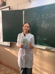 Доброй традицией нашего колледжа становятся встречи студентов с будущими абитуриентами. На этой неделе студентка 1 курса отделения «Лечебное дело» Ткаченко София выступила в новой для себя роли — роли проводника в профессию. Она была приглашена на классный час в свою родную школу в селе Березовка, чтобы поделиться со школьниками самым важным: своим личным опытом выбора профессии и первыми впечатлениями от студенческой жизни в медицинском колледже. В ходе классного часа София рассказала о специальностях, которые можно получить в колледже, подробно остановившись на той, которую выбрала сама.
